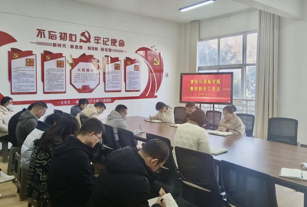 2025年11月18日,建筑与港航学院全体教师在党员活动室召开了期中教学工作会。
