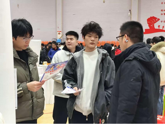 双选会现场,建筑与港航学院学生手持简历和招聘宣传资料,与企业招聘人员面对面交流,认真了解岗位需求、薪资待遇、职业发展等信息,主动争取就业机会。