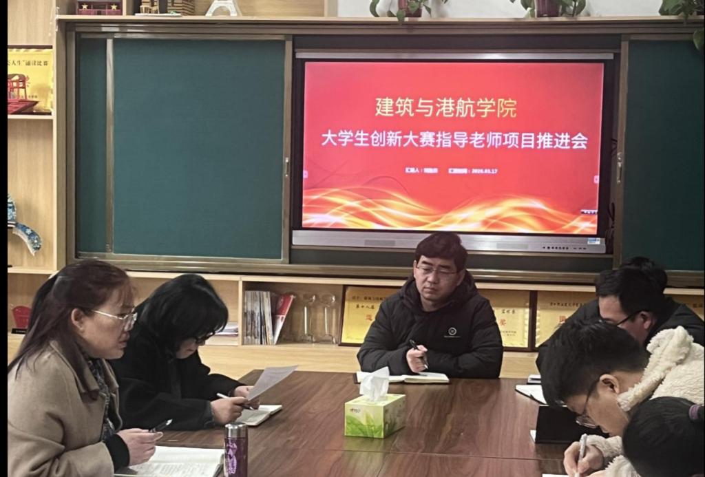为帮助学生精准掌控竞赛内容,明确发展方向,提升核心竞争力,2026年3月17日,建筑与港航学院大学生创新大赛指导老师推进会顺利举办。本次推进会由刘胜杰院长主持,杨改副院长、郭华伟主任及各位指导老师共同参与。